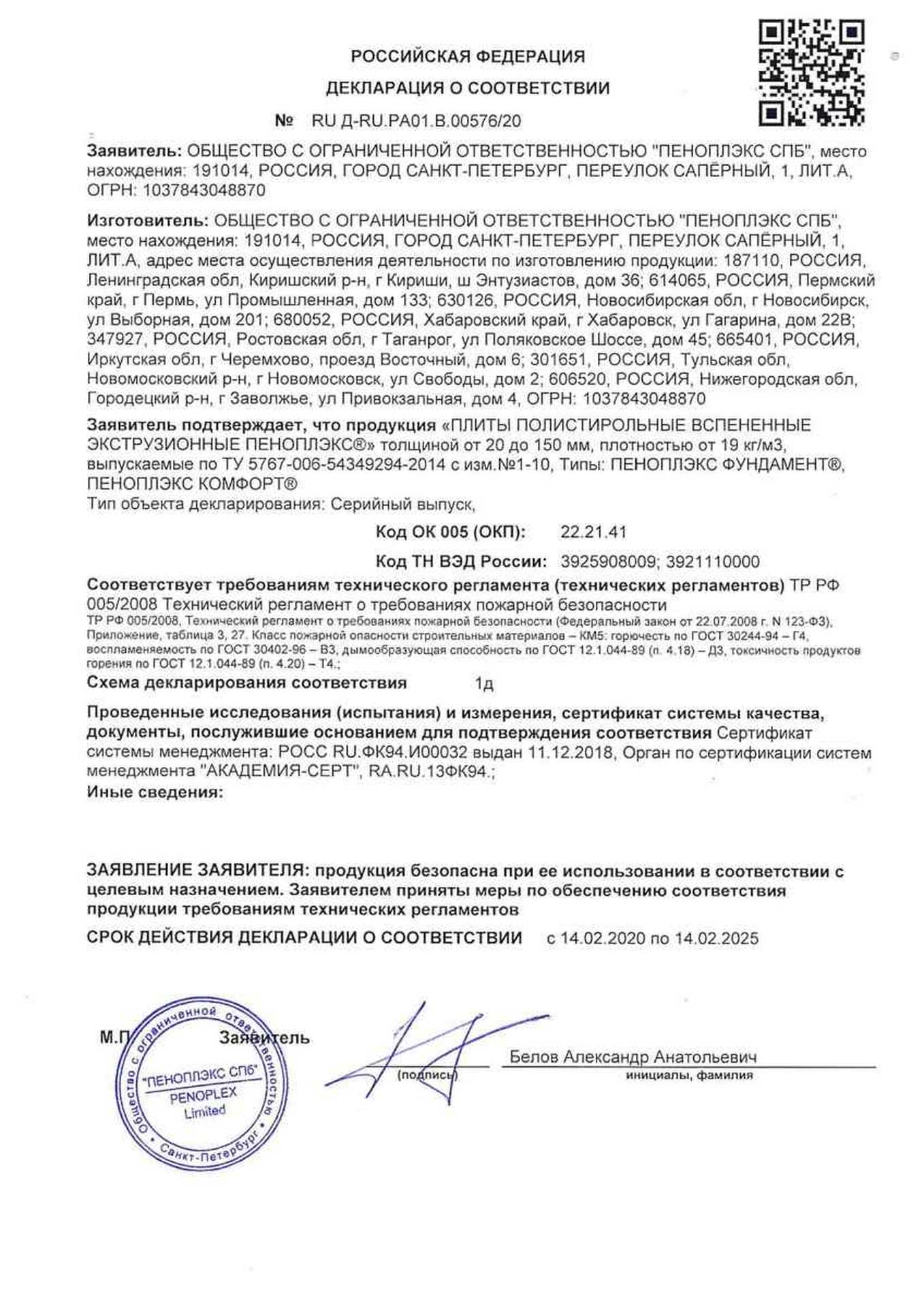 По результатам санитарно-эпидемиологической экспертизы продукция ПЛИТЫ ПОЛИСТИРОЛЬНЫЕ ВСПЕНЕННЫЕ ЭКСТРУЗИОННЫЕ ПЕНОПЛЭКС, произведенные по ТУ 5767-006-56925804-2007 и ТУ 5767-006-54349294-2014, соответствуют установленным требованиям.